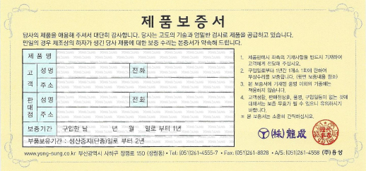 Á¦Ç°¿¡ µû¶ó 1ȸ ¹«»ó¼ö¸®¸¦ º¸ÁõÇÏ´Â Á¦Ç°º¸Áõ¼­°¡ ÀÖ½À´Ï´Ù. ¸ðµç Á¦Ç°¿¡ µé¾î ÀÖ´Â, ǰÁúÀ» º¸ÁõÇѴٴ ǰÁúº¸Áõ¼­¿Í´Â ´Ù¸¨´Ï´Ù. Á¦Ç°º¸Áõ¼­¸¦ °¡Áö°í °è½Å °í°´²²¼­ Á÷Á¢ ¹æ¹® ¼ö¸® ½Ã Á¦Ç°º¸Áõ¼­¸¦ Á¦ÃâÇØ Áֽðí, ÅÃ¹è µî Á÷Á¢ ¹æ¹®ÀÌ ¾Æ´Ò °æ¿ì Á¦Ç°º¸Áõ¼­ÀÇ ³»¿ëÀ» ÀÛ¼ºÇÏ½Ã¾î ¼ö¸®ÇÒ Á¦Ç°°ú ÇÔ²² º¸³»ÁÖ½Ã¸é µË´Ï´Ù.